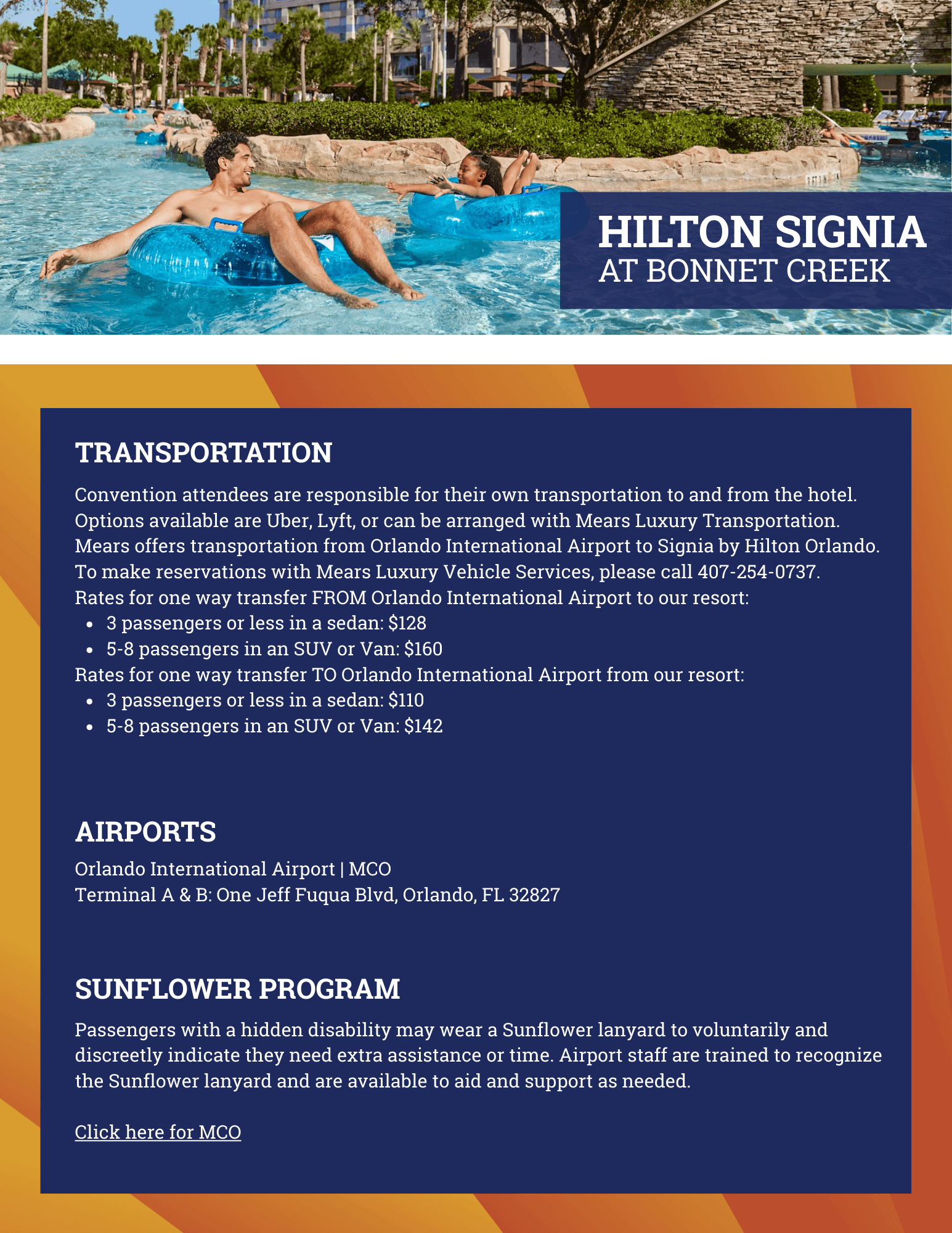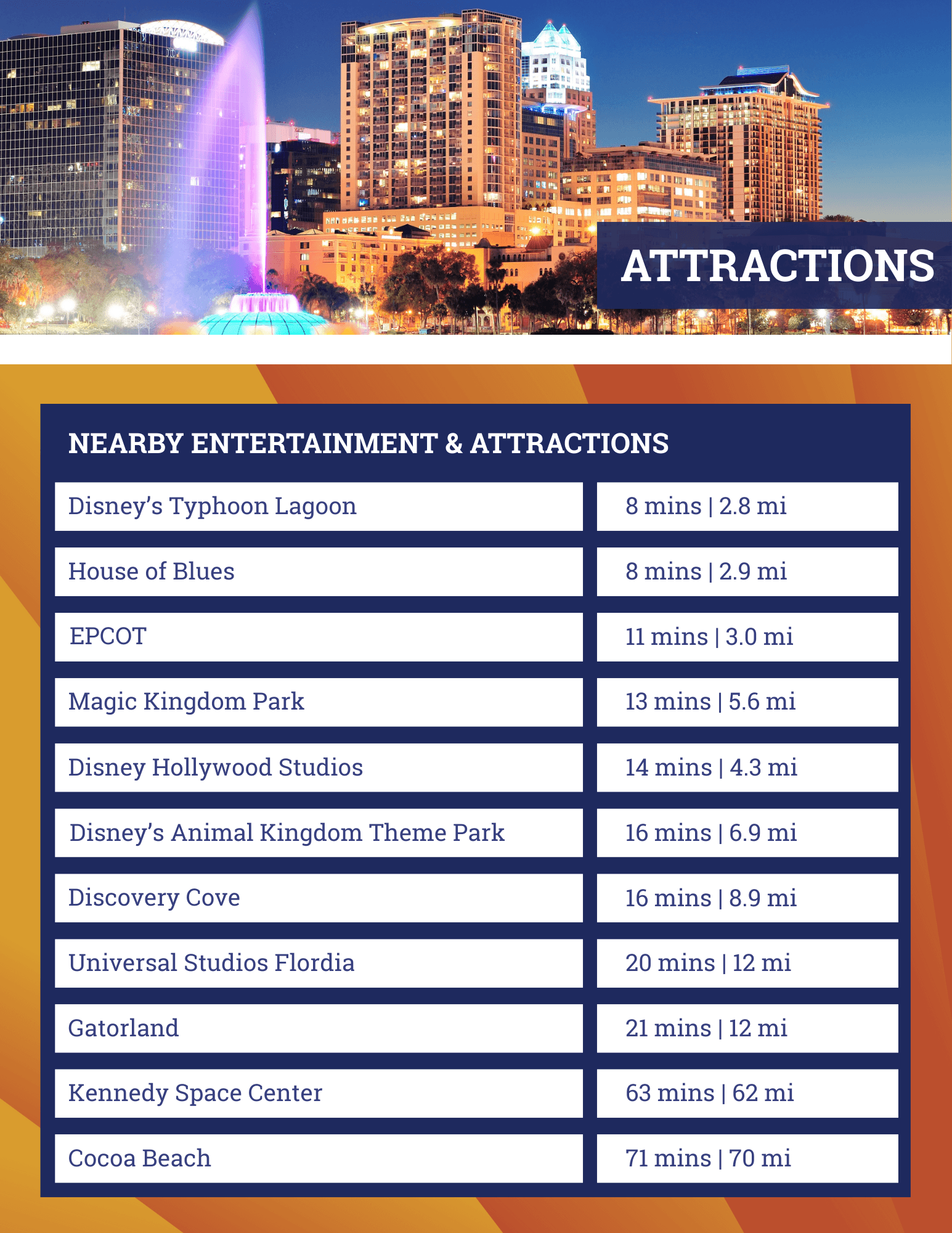We are happy to provide an Orlando Visitors' Guide so that you can make the most out of your trip! Click the button below to download the Orlando Visitors' Guide.