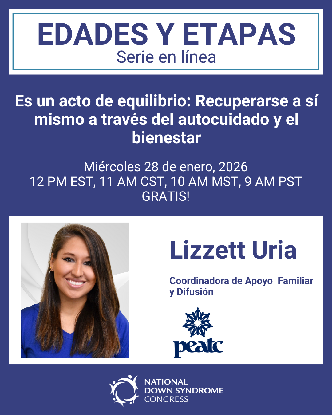 Recuperar el control de su vida requiere encontrar su propio camino hacia el bienestar y comprometerse a priorizarse a sí mismo. Esto es difícil para todos los padres y cuidadores, especialmente para los padres de niños con discapacidades. La vida puede ser impredecible, y lidiar con el estrés y el agotamiento puede resultar abrumador. Mantener el equilibrio y la paz interior, en lugar de sentirse desbordado, es un verdadero desafío. Este taller interactivo está diseñado para ayudar a los padres de niños con discapacidades a ver el autocuidado desde una nueva perspectiva. Ofrece estrategias prácticas que te ayudarán a superar los obstáculos que te impiden equilibrar su vida y recuperar su bienestar a través del autocuidado. Al participar en este taller, aprenderá a priorizar el autocuidado y a integrarlo en su rutina diaria. Con las herramientas y técnicas adecuadas, podrá alcanzar un mayor equilibrio, paz y bienestar, lo que tendrá un impacto positivo no solo en usted, sino también en su familia.